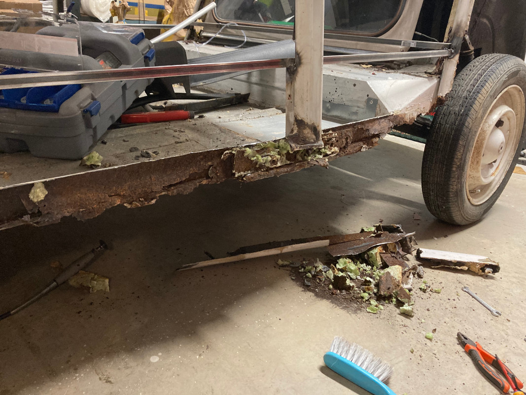 Corrosion des planchers, joint de custode ou de trappe d'aération, tôle rouillée, rénovation d'aile, plancher pourri, remontage de baguettes de porte, vernis après peinture, comment boucher trou de tôle...
