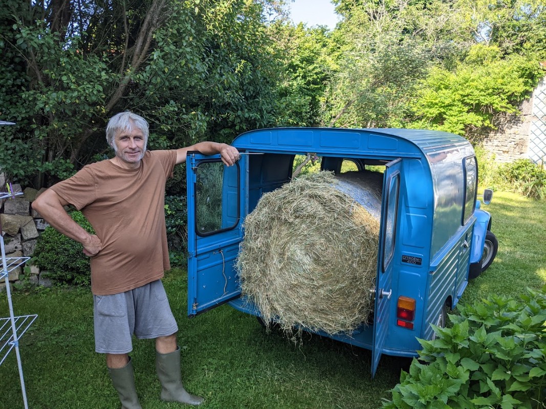 (la botte de foin a été faite "sur mesure" pour rentrer dans le coffre)