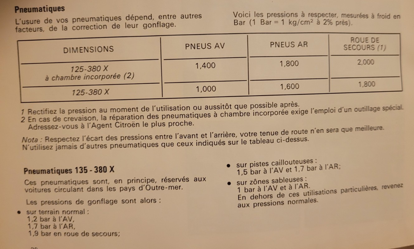 Pour les pneus, j'ai trouvé ça sur ma notice de Avril 1971