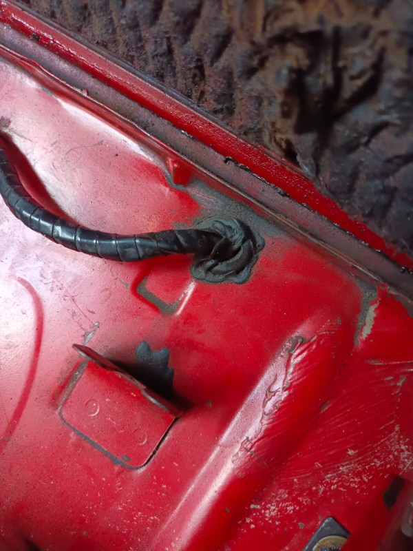 Passage de fils du moteur vers l'intérieur de ma 2cv pour installer un boitier à fusibles