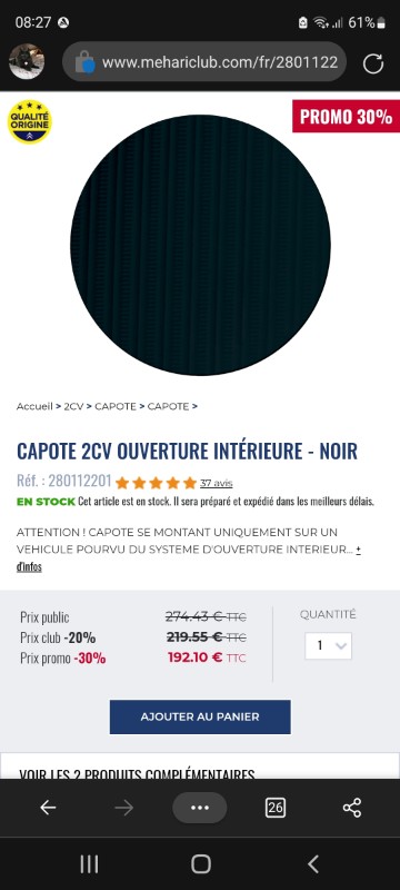 Bonjour, tu a aussi TPV 2CV capote à 188,52€,bon produit