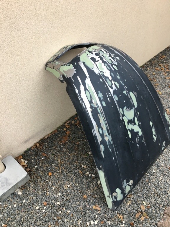 le capot m'as demandé énormément de temps ,la partie avant était bien pourrie et c’était un peu de la tôle ondulé sur le dessus