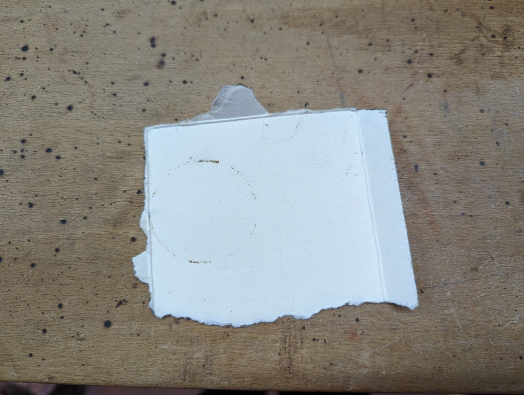 Sur un morceau de carton, je fais un genre de décalcomanie pour obtenir la taille de l’ouïe.