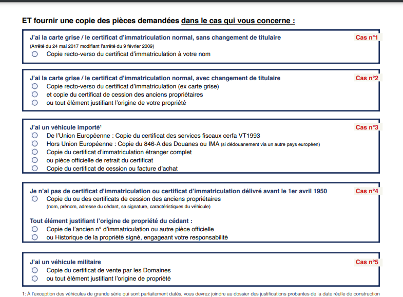 Non je confirme mes dires. Sur le site en ligne de demande d'attestation FFVE, voici les éléments obligatoires et les éléments facultatifs. (dans le cadre où l'on a pas la carte grise)