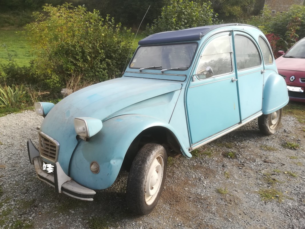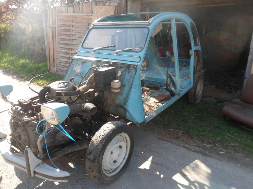 je vous présente ma 2cv4 récupéree dans une sous sol d'une maison mais malheureusement humide