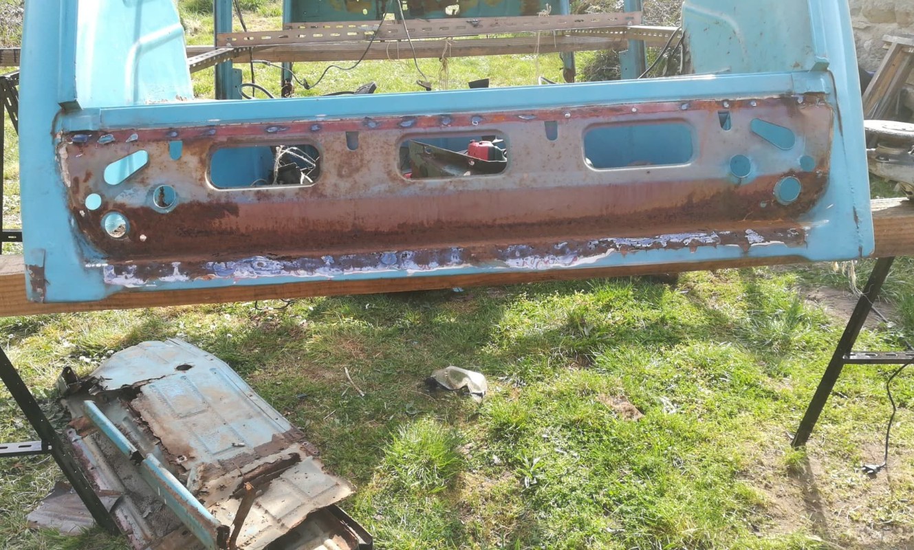 réponse ca ne sert a rien d enlevez une peinture qui tiens et qui ne montre pas de point de rouille c'est quelle est bien accroché ca sert de support ( parole de mon père qui été mécanicien carrossier tôlier peintre de métier )( c'est lui qui m'as tout appris et oui a 8 ans je démonter mon premier moteur une Renault 8 ) pas mal de petits trous découvert après le sablage tour de pare prise haut de l'aile arrière donc soudure au mig pour rebouchez les trous avec une plaque de cuivre de l'autre coté pour évité de percé la tôle je ferait des photos