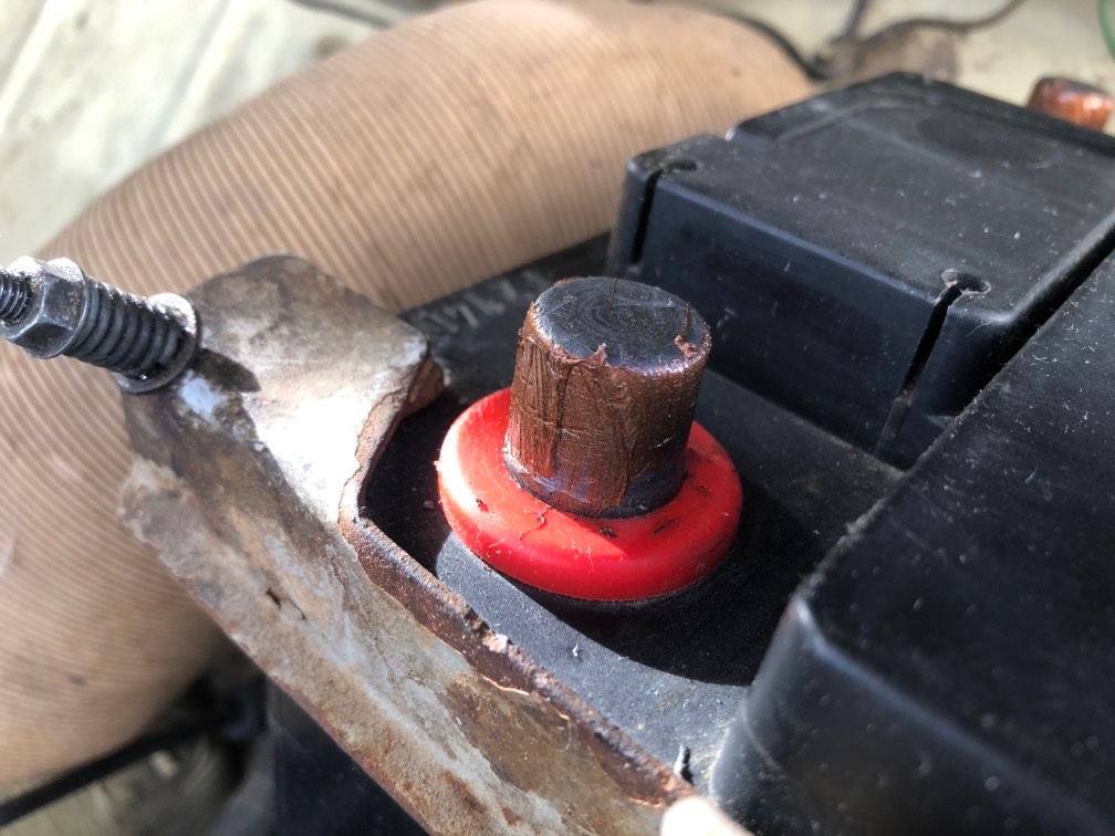 Une protection de la cosse + de la batterie (car la barre de maintien n'est pas très loin de la cosse +) :