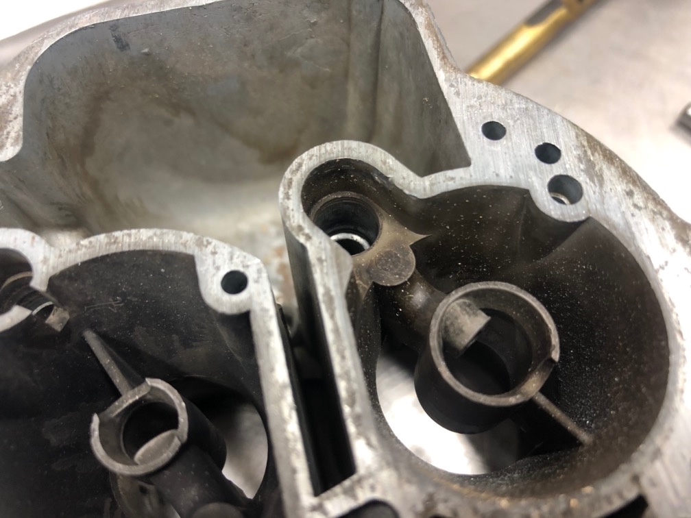 Sur un 26/35, à gauche, c'est l'emplacement du petit gicleur principal 1 corps (celui tout petit, qui est planqué) (à droite, c'est l'orifice du circuit inter-cuve)