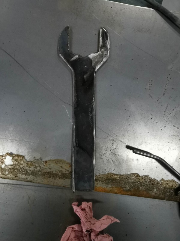 fabrication d'une clé de 46 avec 3 tôle soudé ensemble voir photos la clé fonctionne je l'ai pas fignolé elle est brut