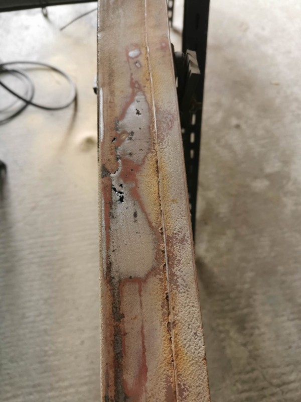 petite réparation du brancard arrière gauche découpé soudure d'un tôle et ponçage