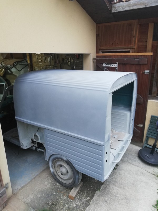 Et moi donc ! la caisse est prête extérieurement pour la peinture Bleu Pétrel , l'intérieur est traité au férose sur tout les points de rouille et poncé puis nettoyé au dégraissant lent UPOL. Il ne me reste plus qu'à peindre au pinceau l'intérieur avec un bleu clair qui s'apparente au bleu pétrel à s'y méprendre (RAL 5012)...et même si j'ai une petite différence de teinte, ce n'est pas grave, ce n'est que l'intérieur, intérieur que je vais habiller en contreplaqué de 10 mm en recouvrant le sol, les côtés et le dessus des passages de roue...Une fois fait l'intérieur le peintre viendra chercher Bleuette et le capot que je vais lui laisser le soin de peindre ( pièce trop importante pour moi ). Tout le reste, ouvrants et ailes + panneaux latéraux, je vais me le faire cet été...tranquillement , je n'ai pas besoin de beaucoup de place et si je foire une peinture, c'est plus simple à reprendre...Bon faut pas la foirer trop de fois non plus...sinon c'est envoi au carrossier-peintre...
