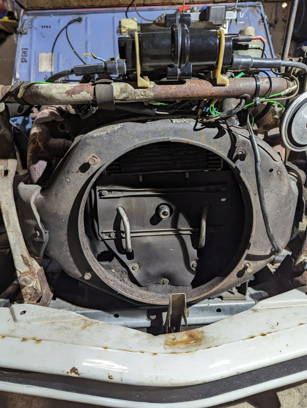 C'est parti pour démonter le reniflard, et pour démonter le reniflard, je dois retirer l'alternateur, et pour retirer l'alternateur je dois retirer le ventilo...