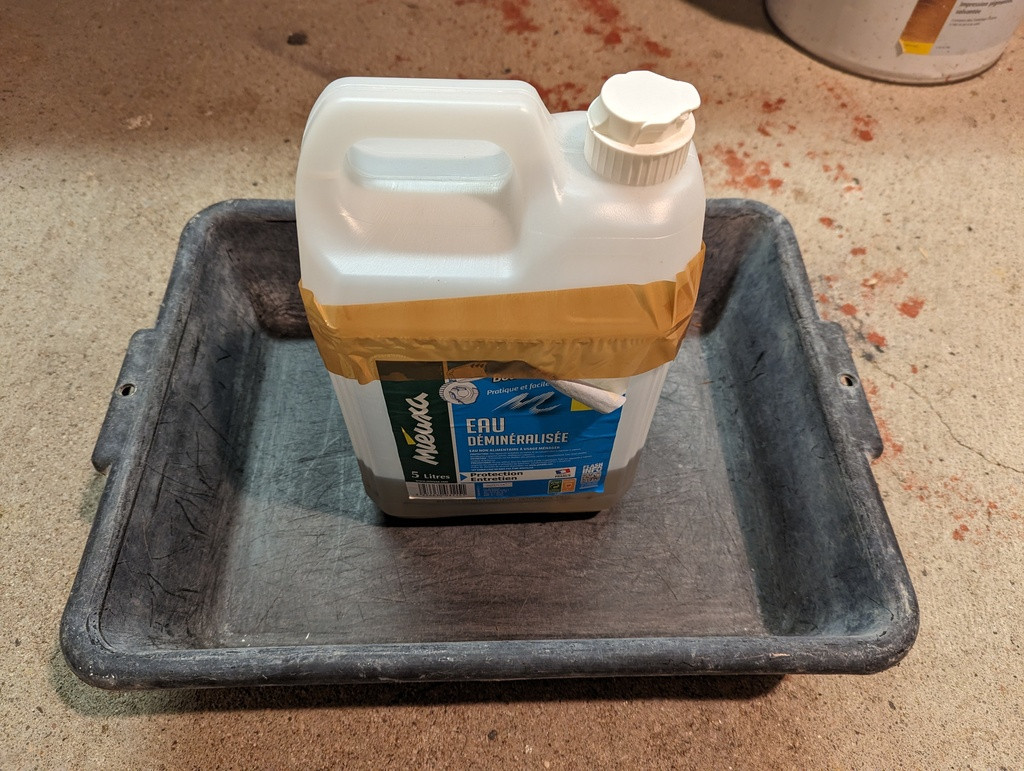 Entretemps, le bac à ultrasons étant (enfin) arrivé, c'est parti pour 1h à 55°C dans de l'eau déminéralisée + liquide vaisselle :