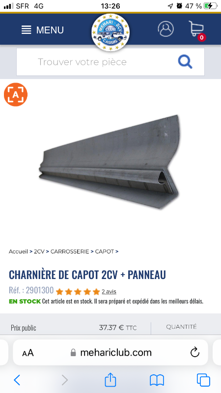 Du coup je pensais changer ces éléments par cette pièce en photo ci dessous (charnière + tôle baie)