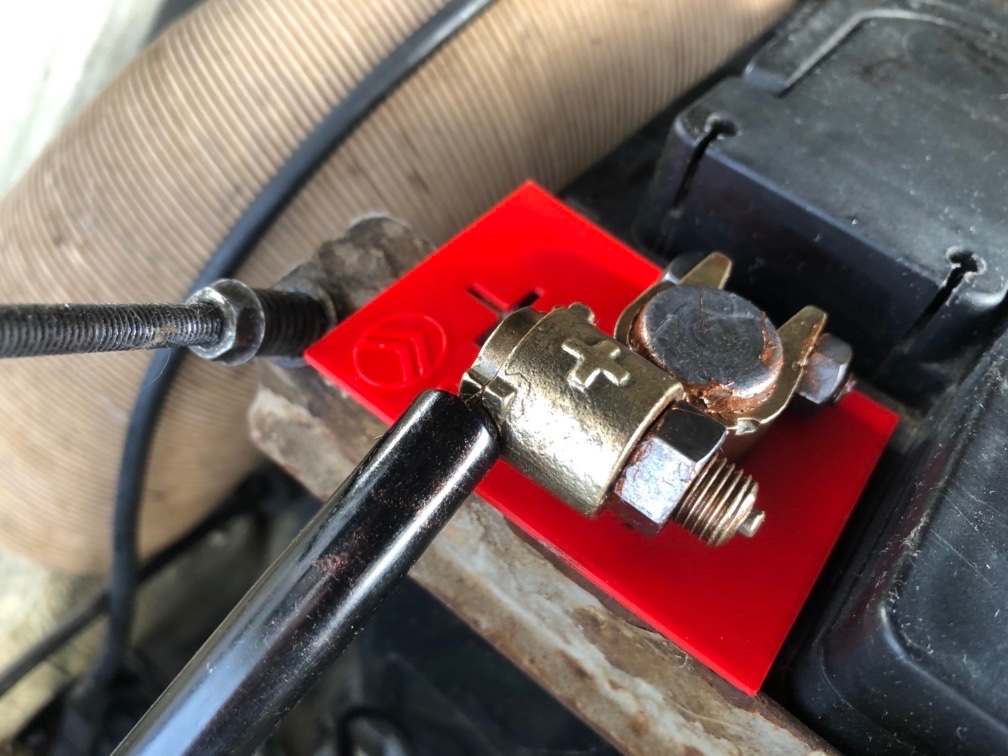 Une protection de la cosse + de la batterie (car la barre de maintien n'est pas très loin de la cosse +) :
