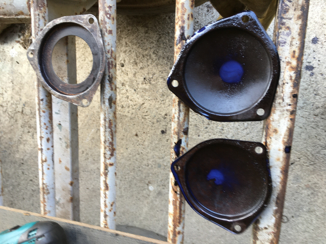 Je les dérouille, et les peins, avec les couvercles et les tôles. Un peu de FEROSE sur les tôles, et ça sera bon pour la peinture, jeudi prochain ! Bon, ce ne sont pas de grandes avancées, mais il fallait bien le faire !