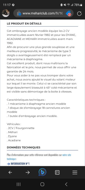 C'est une 2CV6 Special de 80, mais je pense que le moteur a ete change. A quoi dois-je faire attention pour commander les bonnes pieces? L'embrayage lui-meme semble fontionner, donc butee seule? Ou tant qu'a faire embrayage complet? Meme si en y pensant, ca "gratte" un peu de temps en temps en changeant les vitesses, du moins a l'arret.