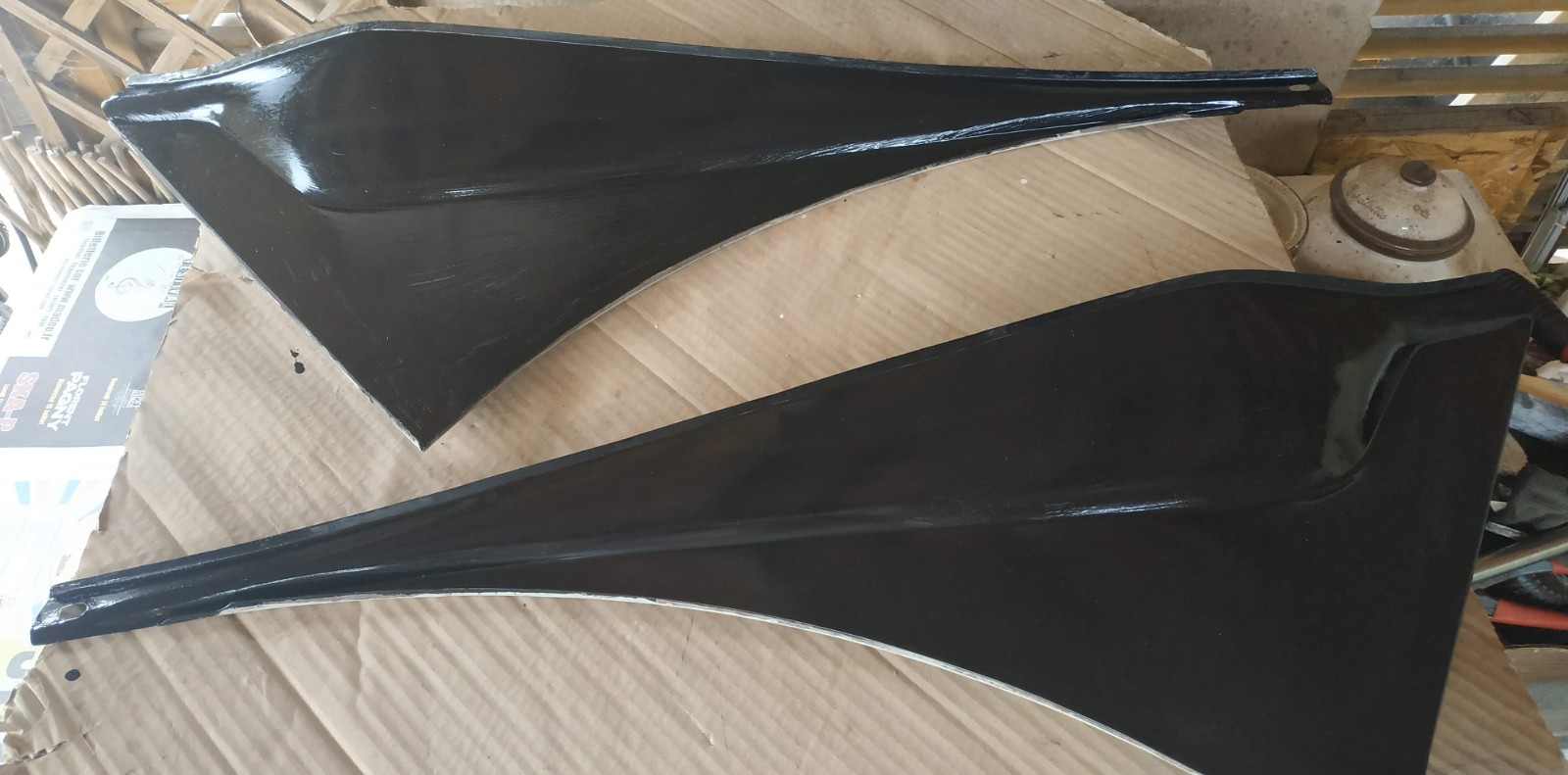 Ducoup, on a peint une première couche sur 2 portes (int/ext), sur une ailes avant, sur la malle arrière, dans le fond de coffre et une partie de l'intérieur de la caisse.