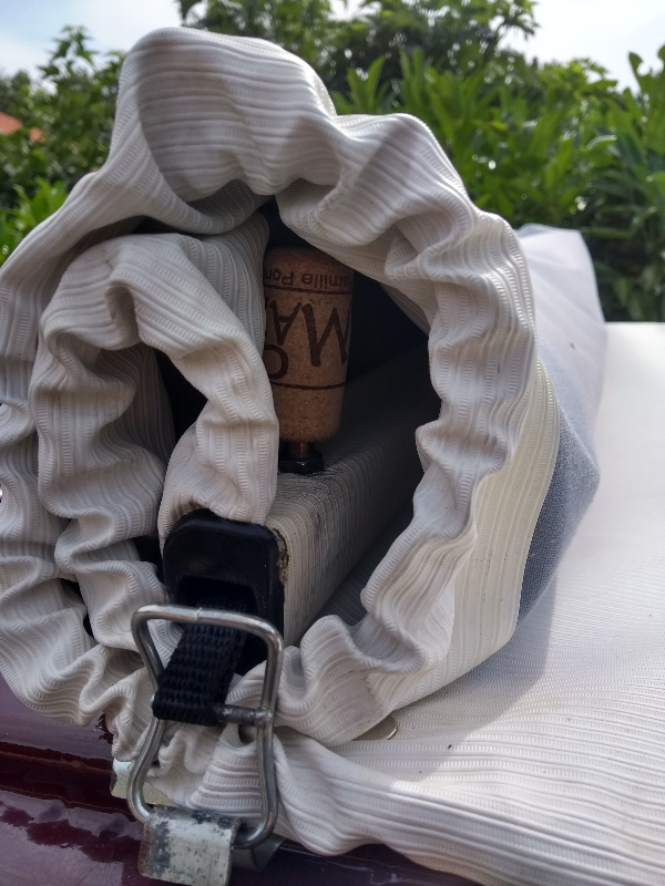 J'ai garder le système d'attaches de l'ouverture extérieure quand je roule la capote. Il faut juste éviter de trop serrer pour que les pions ne percent pas la capote (mais c'est toujours le cas avec les ouvertures intérieures).