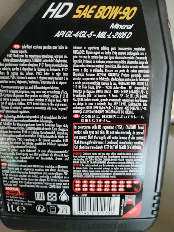 j'ai bien demander et il m'ont dit aussi de la 80w90 :
