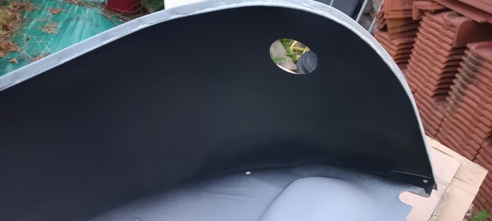Il me restait un petit fond de peinture, j'en ai profité pour passer cette peinture au pinceau sur le bord intérieur de l'aile pour bien protéger cette zone, qui n'est pas facile d'accès au pistolet...