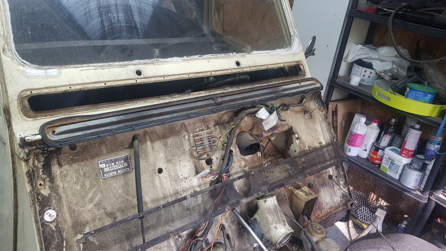 Beau boulot, c'est rassurant de voir l'avancement et ce que tu fais, je termine le démontage de la mienne même couleur, même année et peut être des surprises sous les joints de vitres.