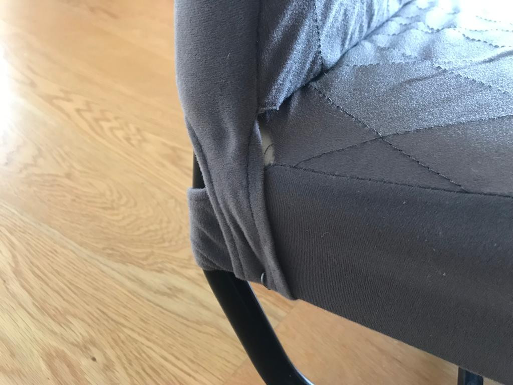 Bref, après remontage des nouveaux élastiques (pour l'assise j'ai doublé 1 nouveau avec 1 ancien plus lâche, à chaque fois) et collage des mousses, je tente de remonter l'ancienne housse. C'est là que je sollicite votre avis... :drapeaublanc: