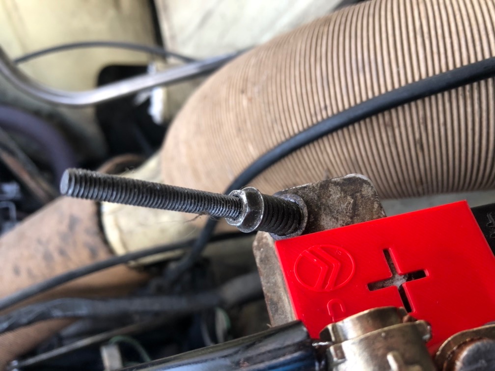 Une protection de la cosse + de la batterie (car la barre de maintien n'est pas très loin de la cosse +) :