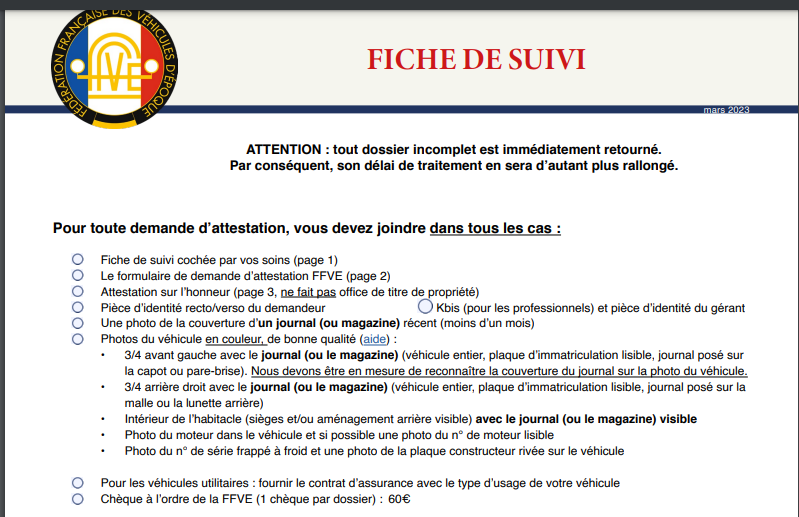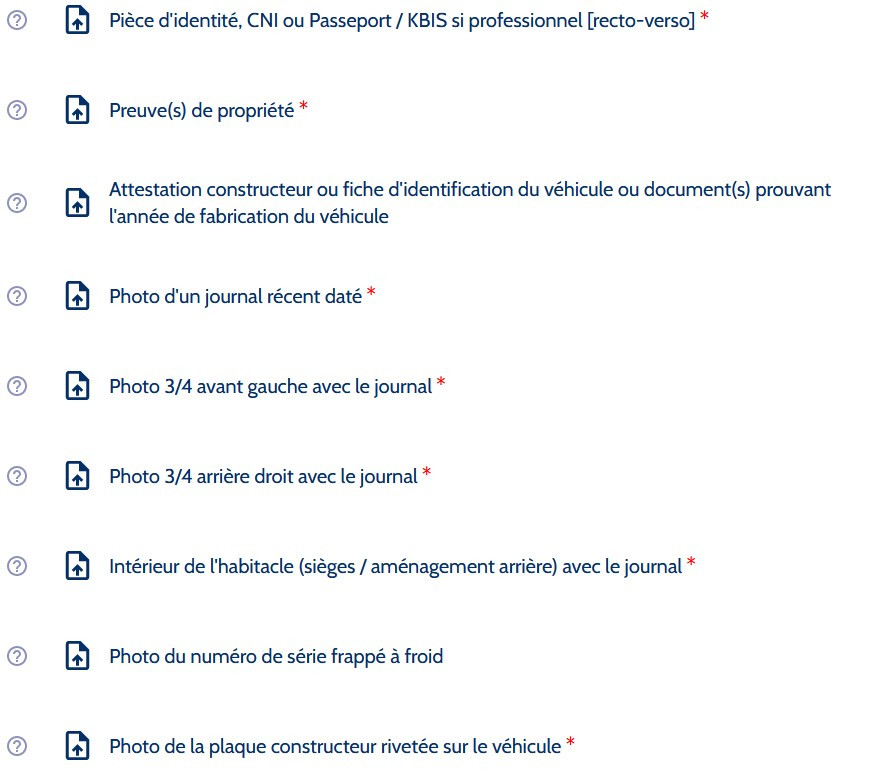 Non je confirme mes dires. Sur le site en ligne de demande d'attestation FFVE, voici les éléments obligatoires et les éléments facultatifs. (dans le cadre où l'on a pas la carte grise)
