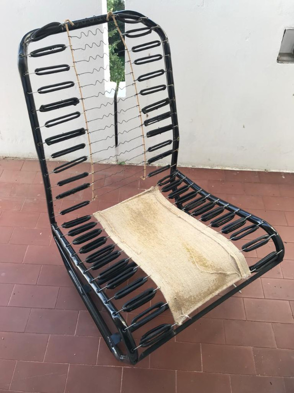 Nettoyage des cadres à l'essence F et l'huile de coude, et repose des nouveaux caoutchoucs. Pour plus de confort j'ai doublé ceux de l'assise avec des anciens caoutchoucs, plus lâches. Puis collage des mousses à la néoprène.