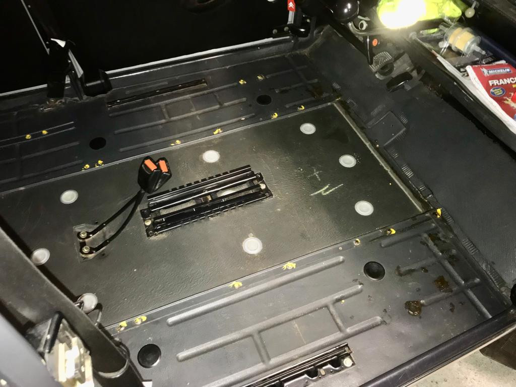 Ayant attaqué par le siège passager, le démontage laisse apparaitre quelques détails de finition surprenant : certains élastiques du dossier ne sont pas présents, et je peine à croire qu'ils aient disparu tout seuls vu que ça fait 20 ans que je possède l'auto, et que les "blancs" sont bien symétriques. :pense: