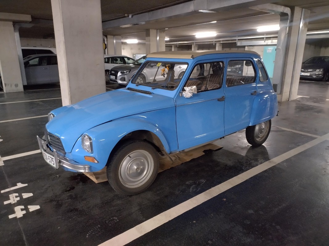 Bref, en attendant, un signe du destin! On a passe plus d'un mois a chercher un appart', dont 2 semaines intenses sur place. Au final, on a trouve un appart' sympa juste a l'exterieur du centre-ville, "penthouse" sur 2 etages, avec 2 places de parking bien larges en soutterain, donc parfait pour une voiture normale, et Violette. Et ne voila t'il pas ma surprise quand je vois cette Dyane en entrant!! C'est un signe!!