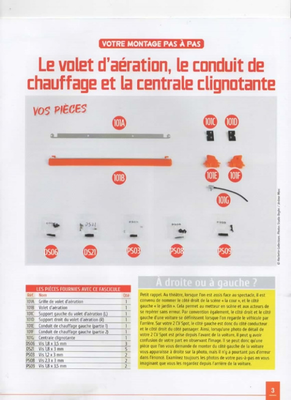 Voici la suite du montage de Spoty, grande sœur de Dolly. Fascicule n° 96 La ceinture de sécurité AV droite et la serrure de la porte AV droite