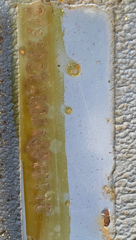 Je n'ai pas de numéro frappé sur le chassis ni plaque rivetée, et je n'ai rien trouvé sur les planchers, je n'ai pas gratté non plus l'épaisse couche de protection.