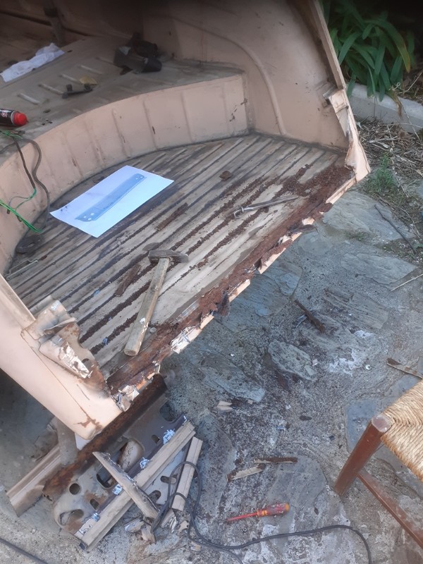 j'ai traité au frameto mais les soudures de l'ensemble feux arriere n'aurait pas pu être soudé apres poncage et mastic, donc j'ai décidé de changer le fond de coffre . 2è partie à suivre