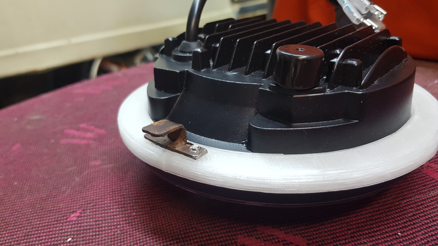 Je prévois de coller au sikaflex l adaptateur sur l optique led et de réaliser la patte venant dans l encoche du cuvelage avec une plaque d inox fine et vissé sur l adaptateur.