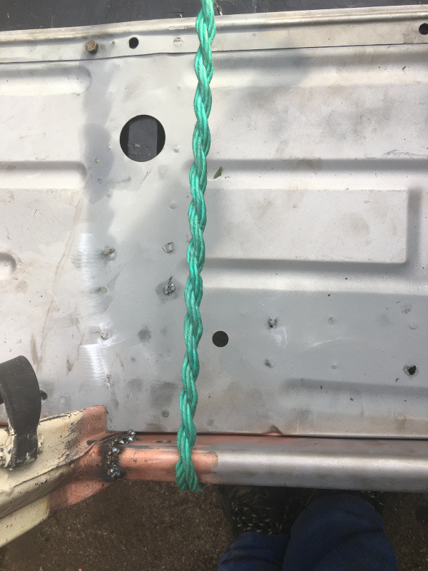 J'ai donc, une fois de plus, tendu une corde, mais en longueur, pour réduire légèrement (1 cm) l'écartement de l'entrée de porte arrière.