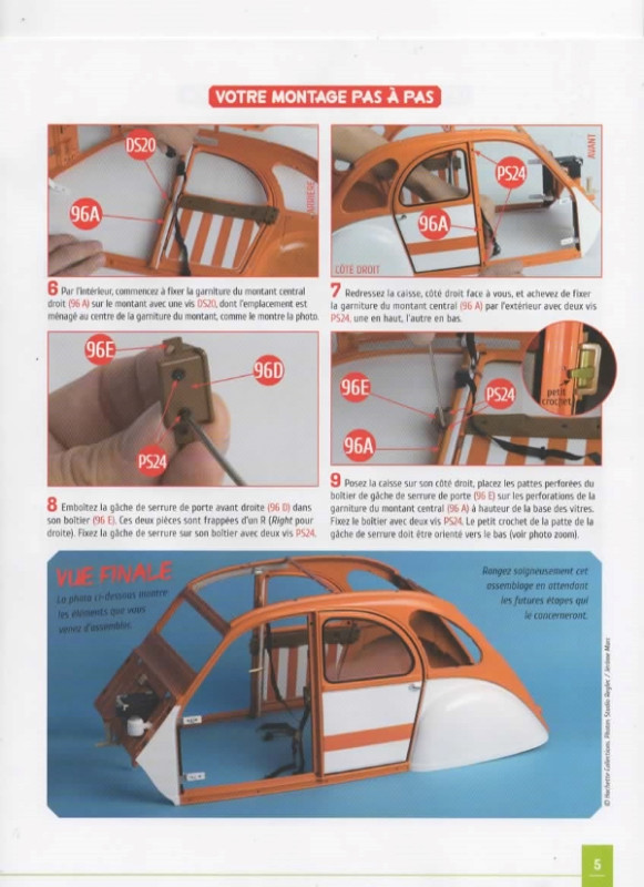 Voici la suite du montage de Spoty, grande sœur de Dolly. Fascicule n° 96 La ceinture de sécurité AV droite et la serrure de la porte AV droite