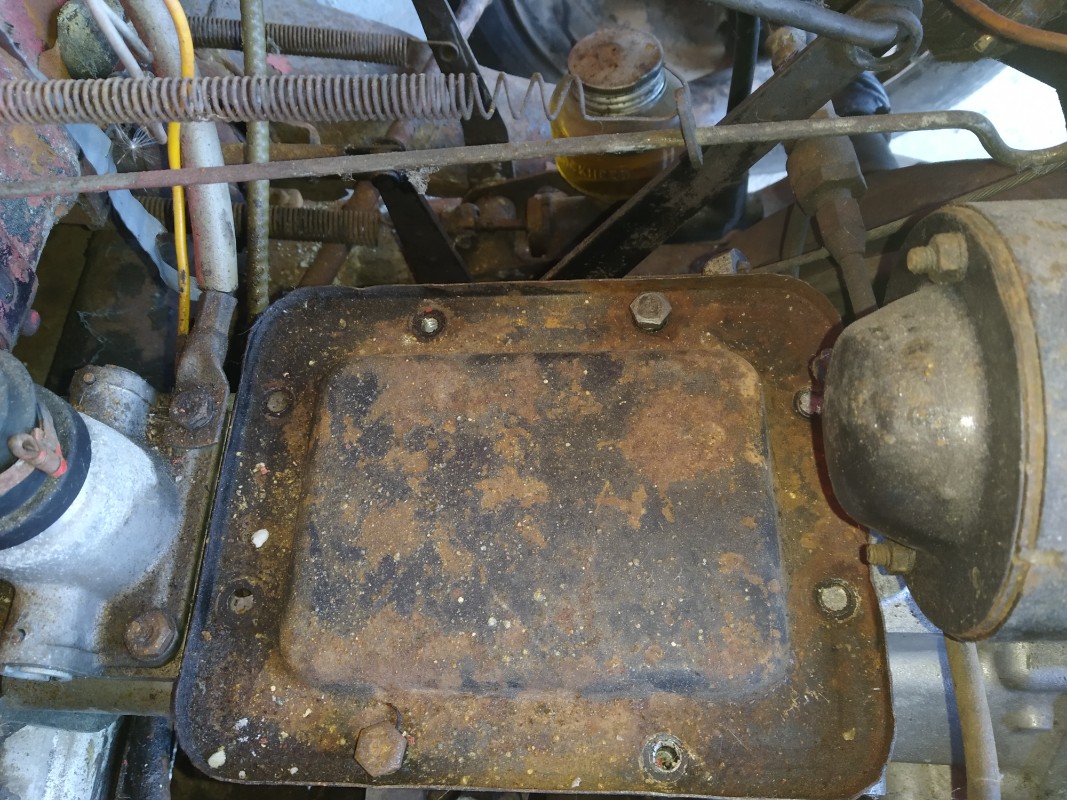 Bizarrement, le capot de la boite ne tenait que par 2 vis (j'ignore où sont les autres) pas entièrement vissé et il n'y a plus d'huile dedans. Est-ce que mon beau-père avait demandé à quelqu'un d'y regarder ? Je ne le saurai jamais.