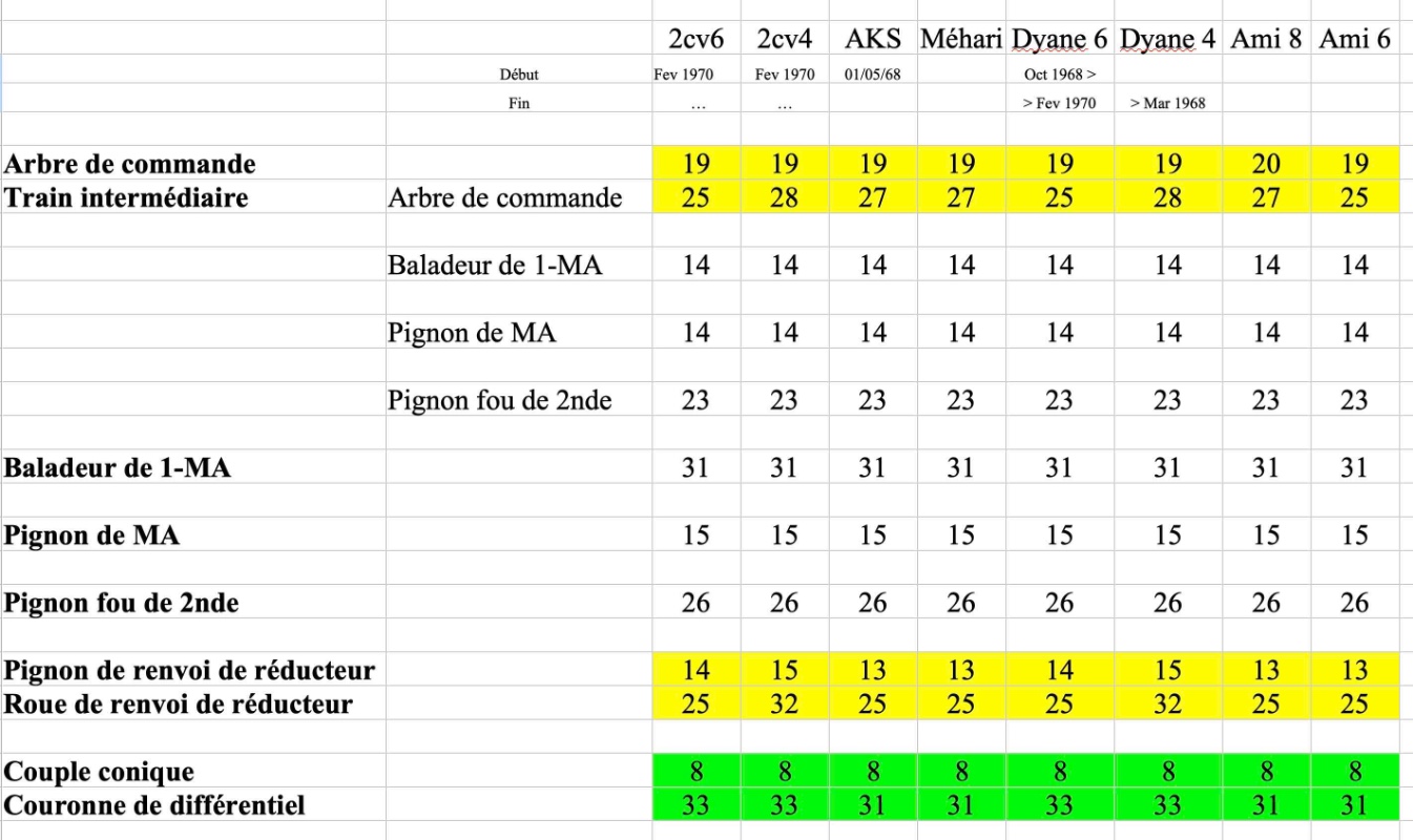 • un post qui détaille les différences entre les 3 boites des 2cv4, 2cv6 et l'AK400. Conclusion, je dois trouver une boîte similaire.