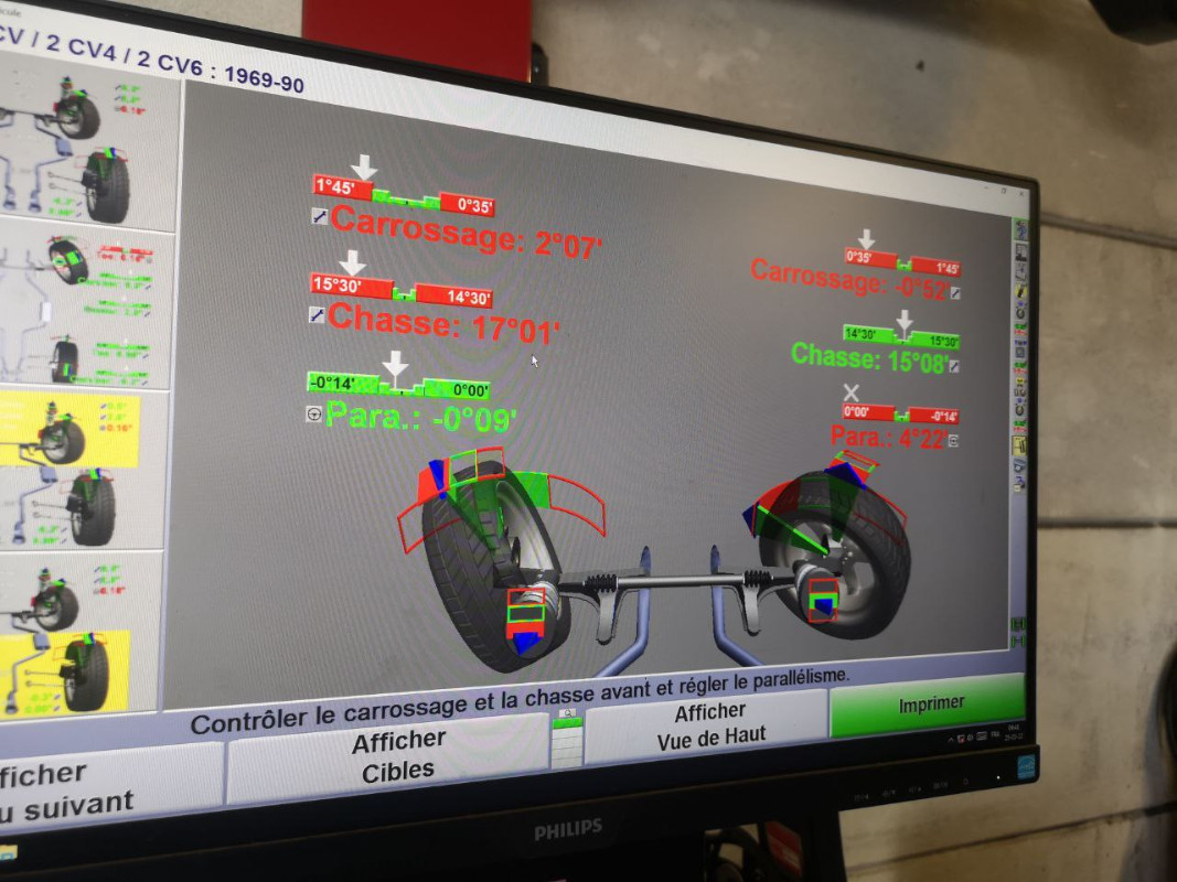 Le contrôleur, très compréhensif, me fait dégonfler un peu les pneus, on se met sur un autre banc (apparemment une deuche sur deux est recalée pour le moment)... Et pareil. :pleurs: