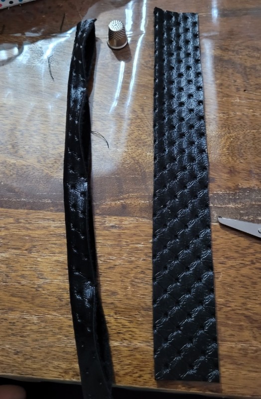 Avec des tombées de Skaï, j'ai fabriqué des attachés qui remplacent les poignées de Spécial absentes sur la mienne.