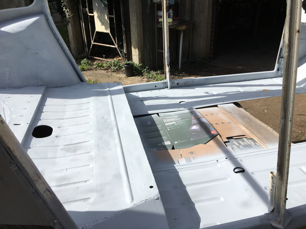 Si les températures prévues sont exactes, je passerai, jeudi prochain, la première couche d'apprêt époxy sur les faces intérieures des tôles neuves (planchers), et sans doute, un peu au-dessus.