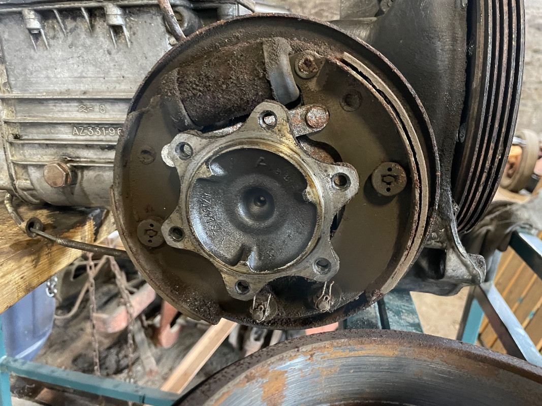 sens, je ne vois pas comment l'enlever. J'ai trouvé quelques références sur le net indiquant qu'il faut enlever l'arbre de différentiel, le palier et le plateau de frein mais je ne vois pas comment retirer cet