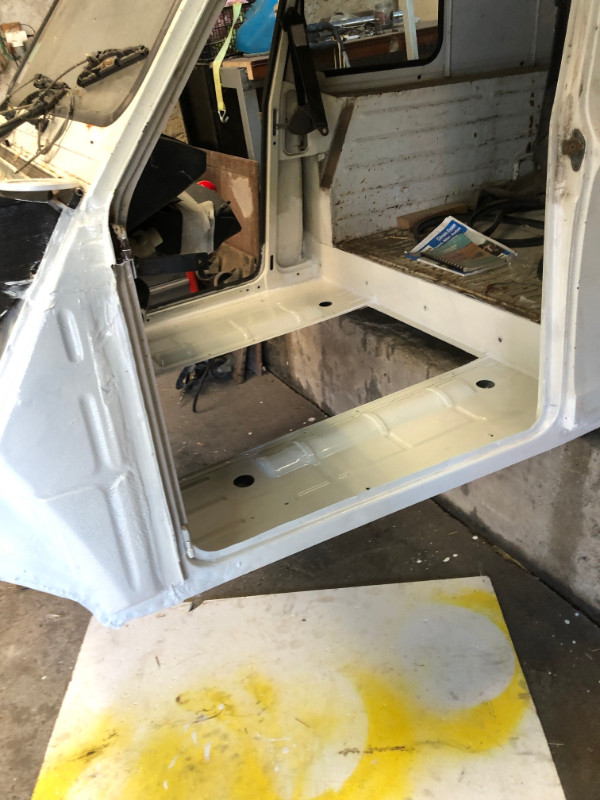 troooop plein de soucis mais c'est reparti ,la tolerie neuve est en place et repeinte comme la joconde et le chassis refermé a vu sa premiere couche de blanc glycero a l'ancienne par Louis le renoooov
