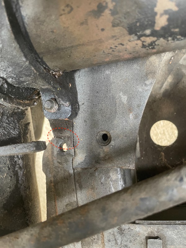 Sur ma 2CV6 de 85, il semble manquer les butées des bras de suspension avant (voir photo). On peut voir un fer plat soudé et cintré qui vient directement taper sur le châssis, ce dernier étant un peu abîmé à cause de ces chocs. Faut-il rajouter une butée au niveau du trou d'écrou ? Si oui, quel modèle, plat ou en demi-lune :