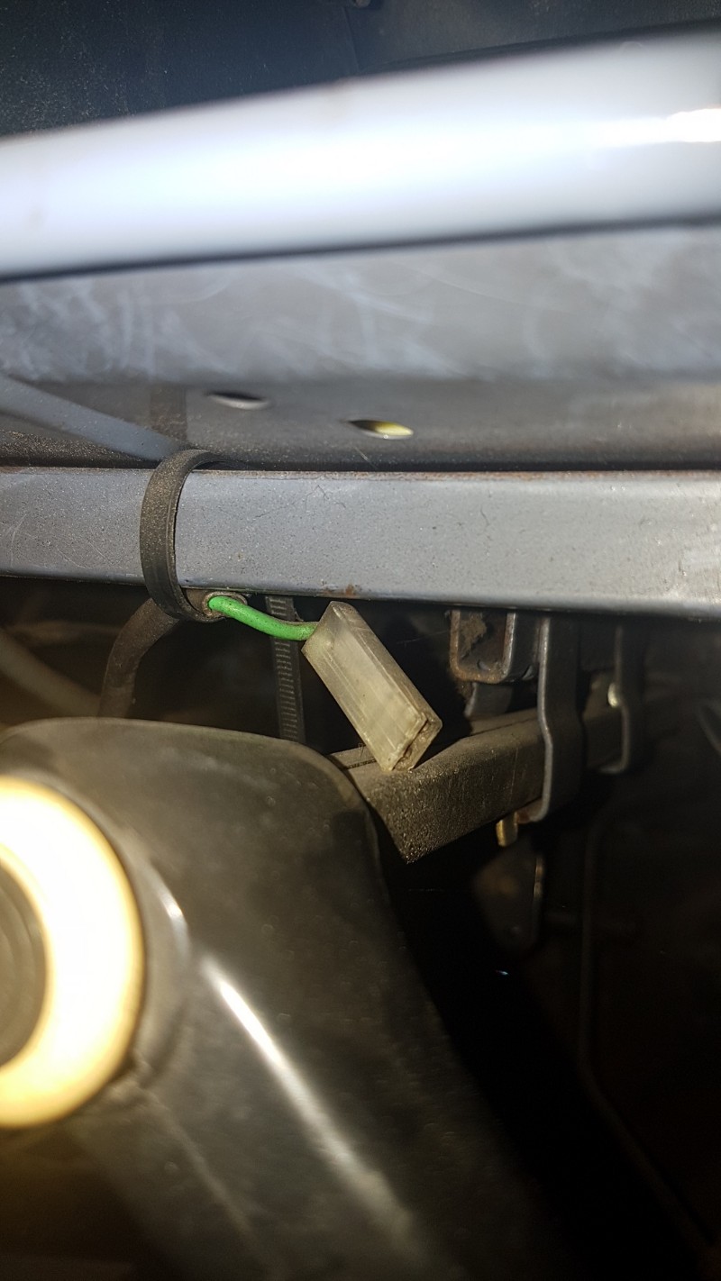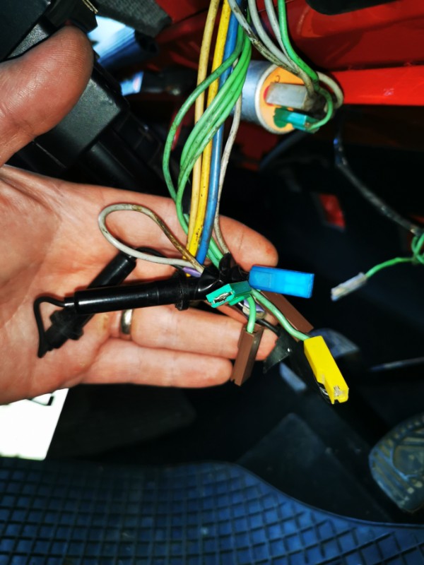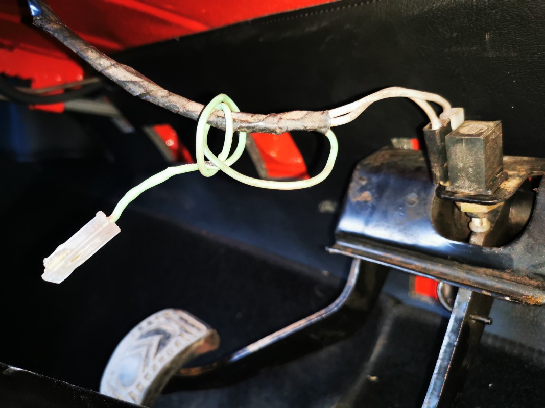 J'ai un petit fil qui se balade, pour l'instant enroulé autour d'un autre près de la pédale de frein. Quelqu'un aurait-il une idée ? En rapport avec le voyant de niveau de liquide de frein peut-être (qui ne s'allume pas, enfoncé ou pas) ?