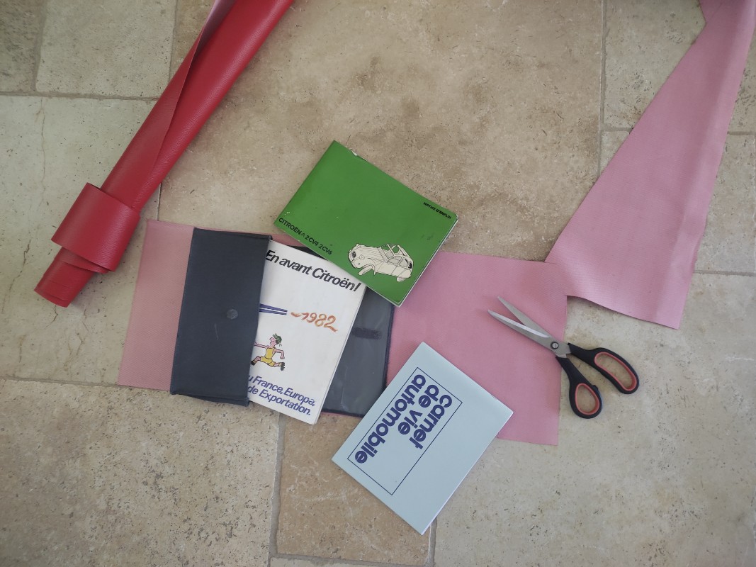 Afin que ça ressemble davantage à un tuto, ci dessous une série de photos complémentaires prises hier lors de la réfection des 2 autres. Ne pas jeter les chutes, souvenez vous que Citroën réutilisait les chutes de toile de capote pour en faire des trousses pour les outils de bord....ou autre. Eric