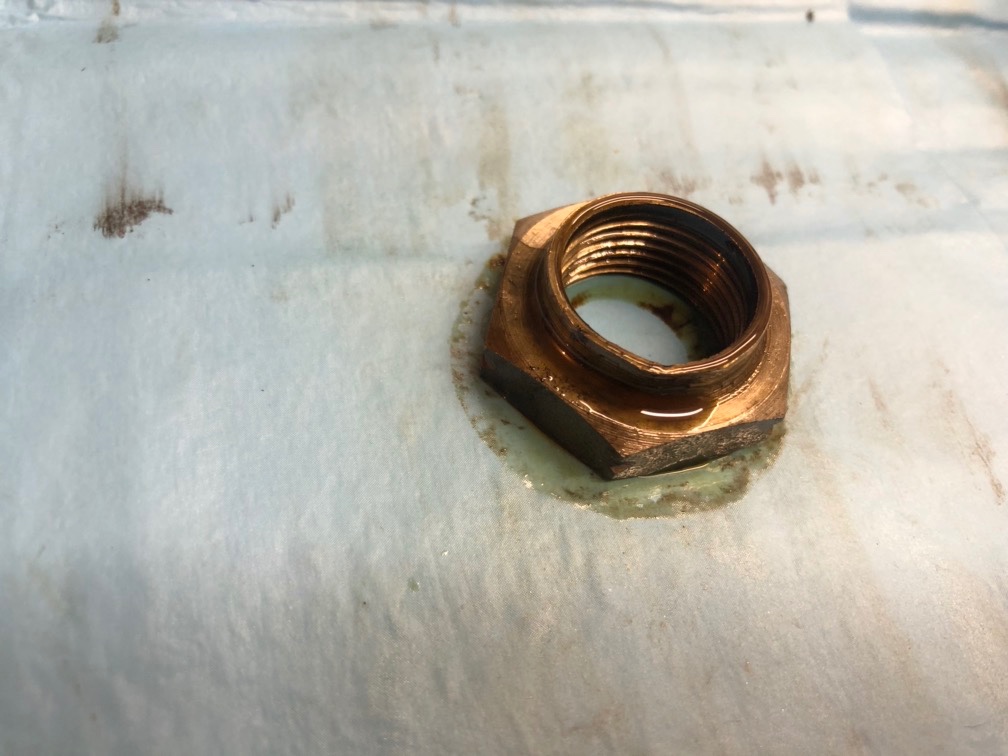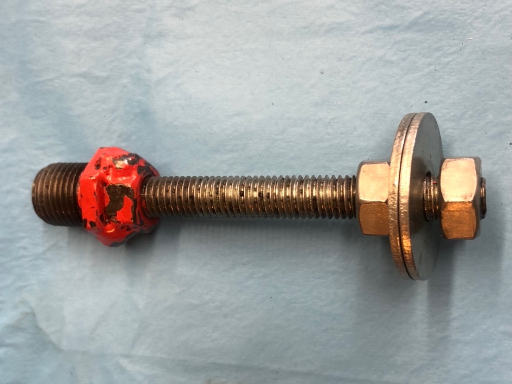 >> le pas est à gauche (attesté par la présence de marques sur l'arête de l'écrou) :