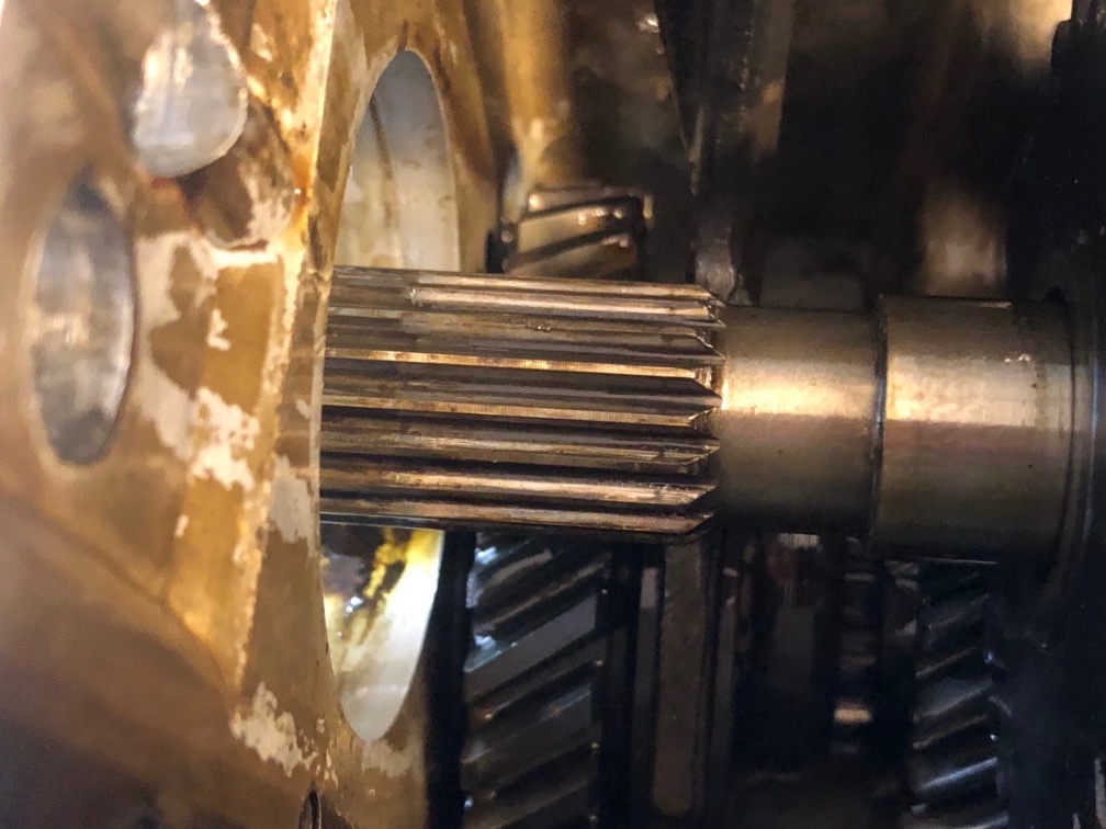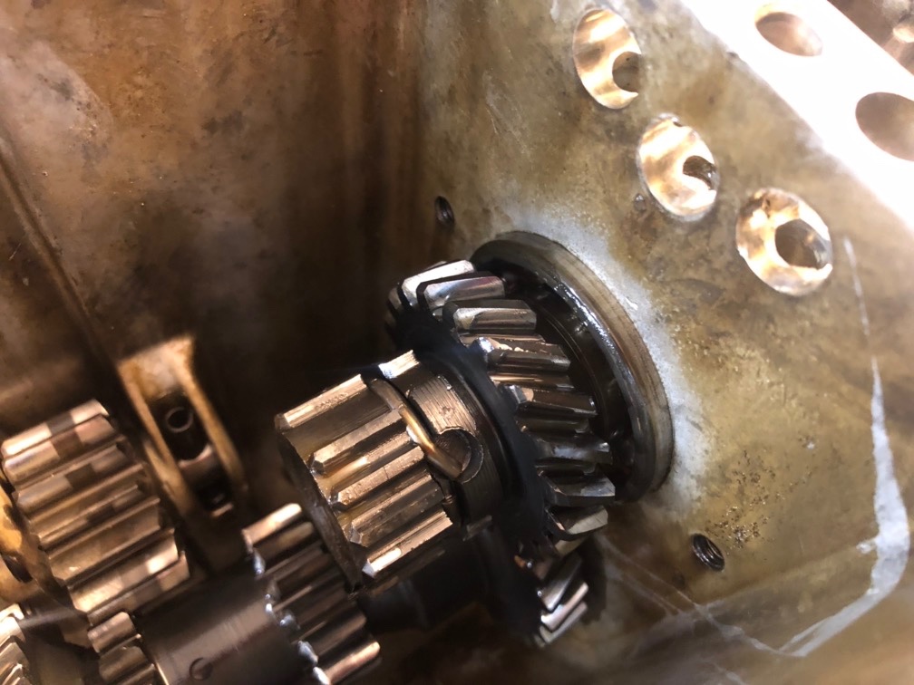 >> puis le pignon de renvoi de réducteur (il est simplement emmanché sur les cannelures de l'arbre primaire)(il a un sens de pose ...)